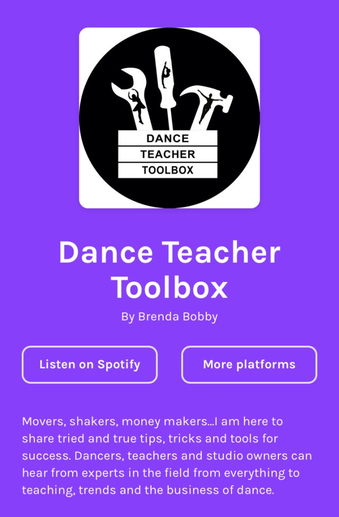Blog & Podcast In The Dance Teacher Toolbox Blog and Podcast I will share my life and dance experiences including: being a studio owner of over 2 decades, a judge for a national dance competition for 10 years, a creator of after school enrichment programs in both private and public schools, director of town recreational dance programs, divorced mom of 4, and a single woman over 40. I hope in sharing with you the good, the bad and the ugly of my life can help others that can relate to many of the things I have encountered. I encourage you to comment and contribute to the discussions I present, as my experience is just one perspective and there are so many others who have had different experiences that can maybe support the dance education community.